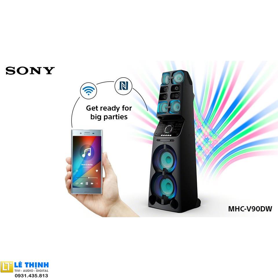 Công suất âm thanh lớn , loa vang xa. Âm trầm ấn tượng và âm bổng rõ nét. Với chiều cao 170 cm, MHC-V90DW mang lại âm thanh đáng kinh ngạc ngay phía sau sàn nhảy.