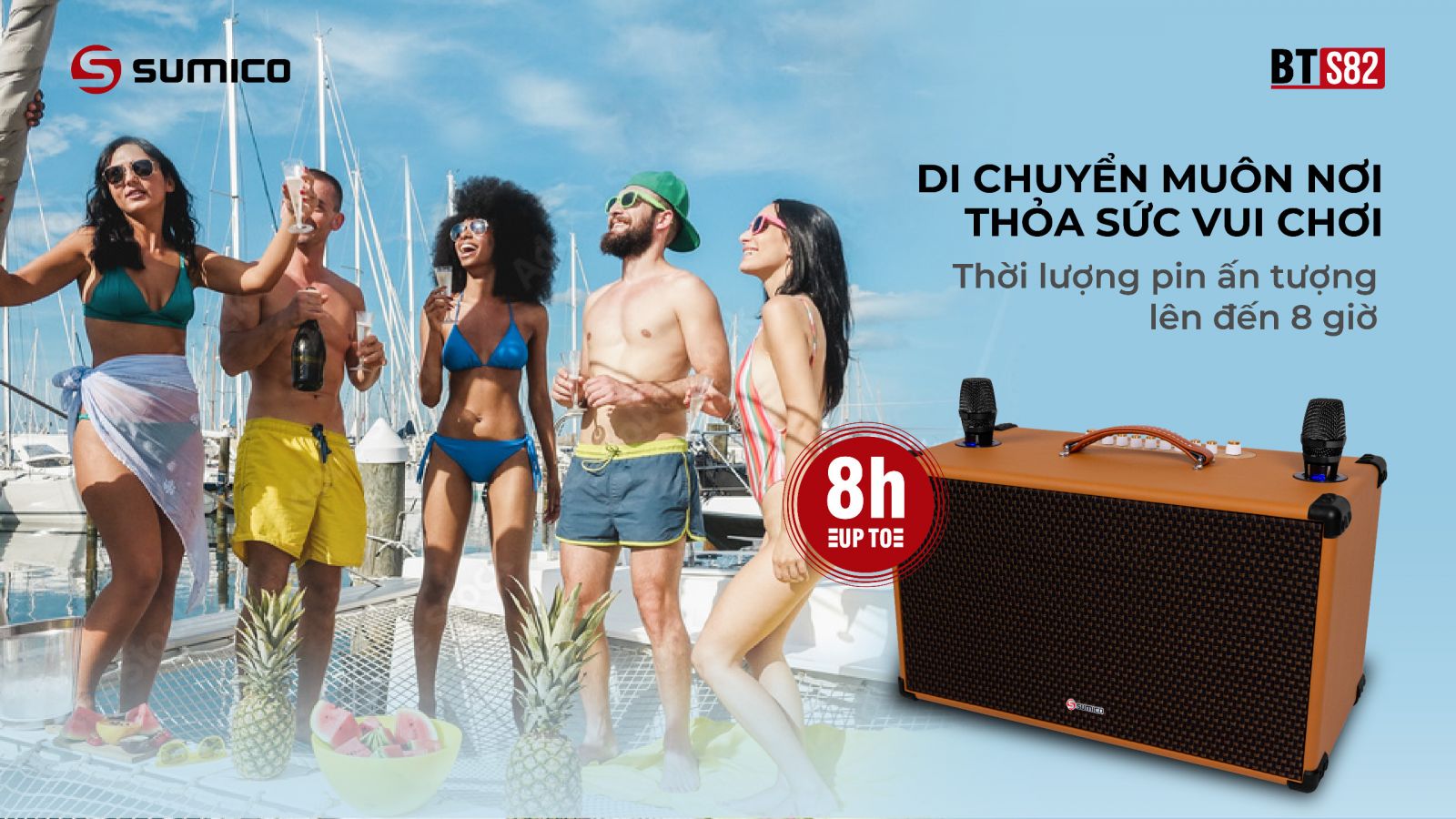 Sumico BT-S82 được thiết kế với tiêu chí hướng tới người dùng có yêu cầu cao về chất lượng âm thanh di động. Loa công suất lớn nhưng có kích thước nhỏ gọn để bạn có thể xách tay và đặt để vừa vặn thoải mái trong cốp xe hơi khi đi picnic. Sản phẩm hữu dụng với cấu hình All In One, đầy đủ nhất cho nhu cầu giải trí di động mọi lúc mọi nơi tại nhà hay trong những chuyến du lịch, vui tiệc tại homestay, resort: nghe nhạc, xem phim, hát karaoke, chơi đàn guitar và các nhạc cụ khác.