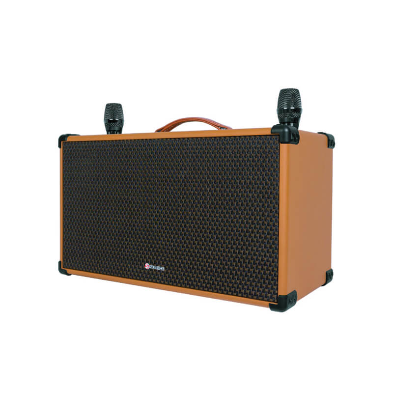 Loa Sumico BT-S82 có tay xách bọc da nhám êm thoáng giúp thoải mái cầm nắm khi di chuyển, được bọc nhựa 8 góc để bảo vệ vỏ da và góc thùng. Vỏ thùng được bao bọc bằng một lớp da cao cấp màu Cam Nâu đẹp mắt sang trọng nổi bật phối sắc tinh tế cùng màu Vàng Đồng của các nút chỉnh âm thanh và bảng ghi chú. Mặt lưới bằng chất liệu sợi tinh chế chọn lọc màu Đen, Nâu đan dệt xen kẽ tạo hiệu ứng bắt mắt và có tính thẩm mỹ cao, độ dày và khoảng cách sợi dệt được tính toán kỹ lưỡng để bảo vệ loa con bên trong mà vẫn đảm bảo đặc tính âm học. Thiết kế loa karaoke xách tay di động mang nét đẹp hoài cổ của Sumico BT-S82 tạo nên phong cách độc đáo, luôn sang trọng và cá tính dù sử dụng lâu dài qua nhiều năm.